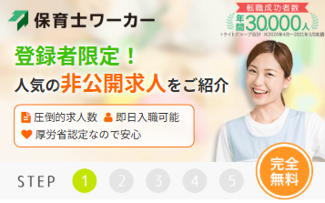 保育士転職サイトは、複数ありますが求人数・非公開求人を見ても「保育士ワーカー」はまずは登録しておきたい保育士転職サービスと言っていいでしょう。