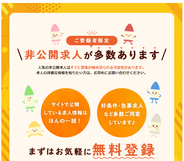 保育士専門の転職サイト独自の求人なので、登録者だけに公開しているためです。