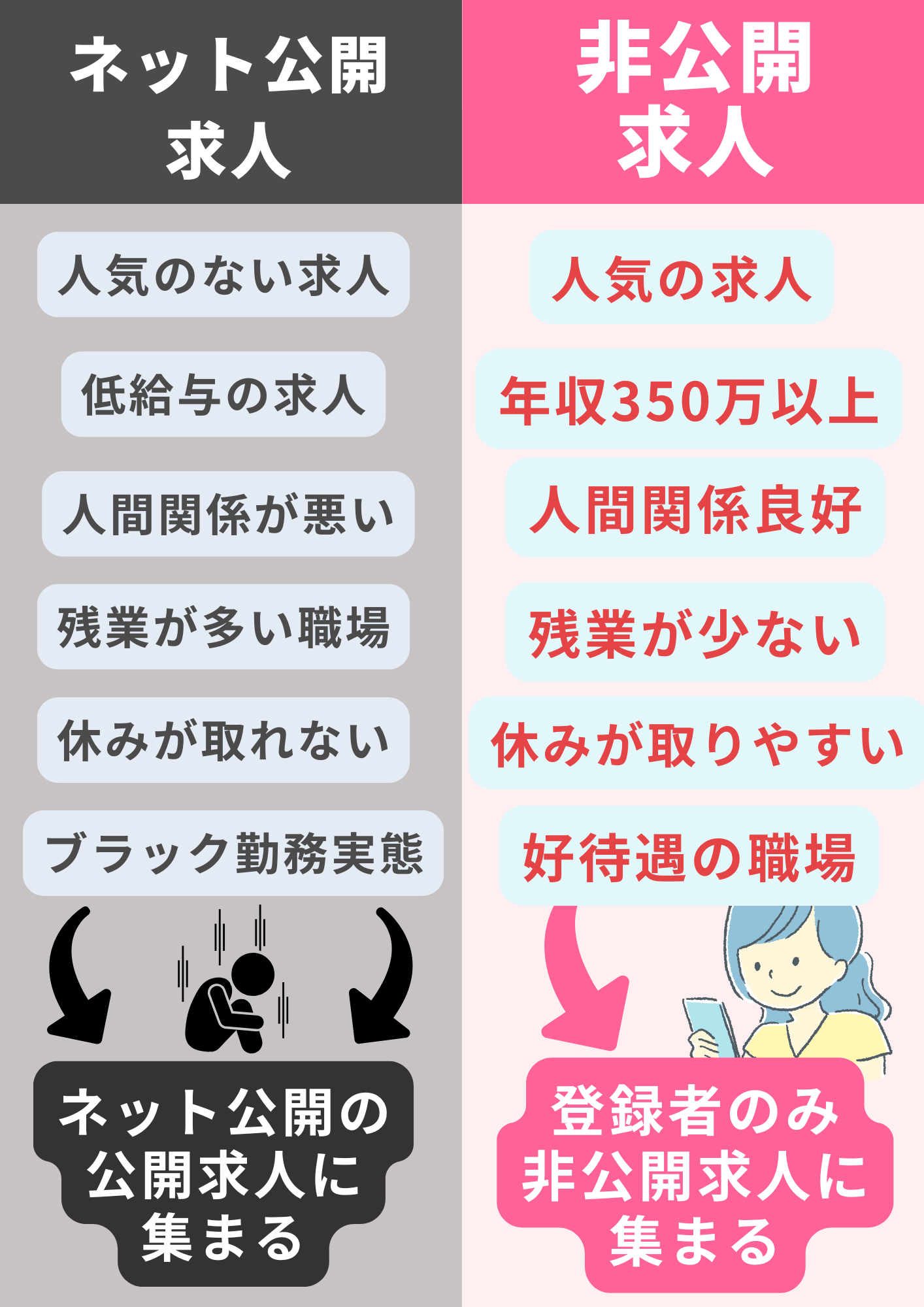 というか、条件の良い求人は表に出る前に決まることがほとんどです。