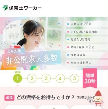 まだこのような保育士専門の転職サービスを使ったことがない方は「保育士ワーカー」で求人を探してみましょう。