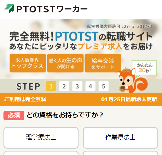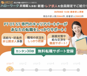 理学療法士転職サイトは、複数ありますが求人数・非公開求人を見ても「PTOTSTワーカー」はまずは登録しておきたい理学療法士転職サービスと言っていいでしょう。